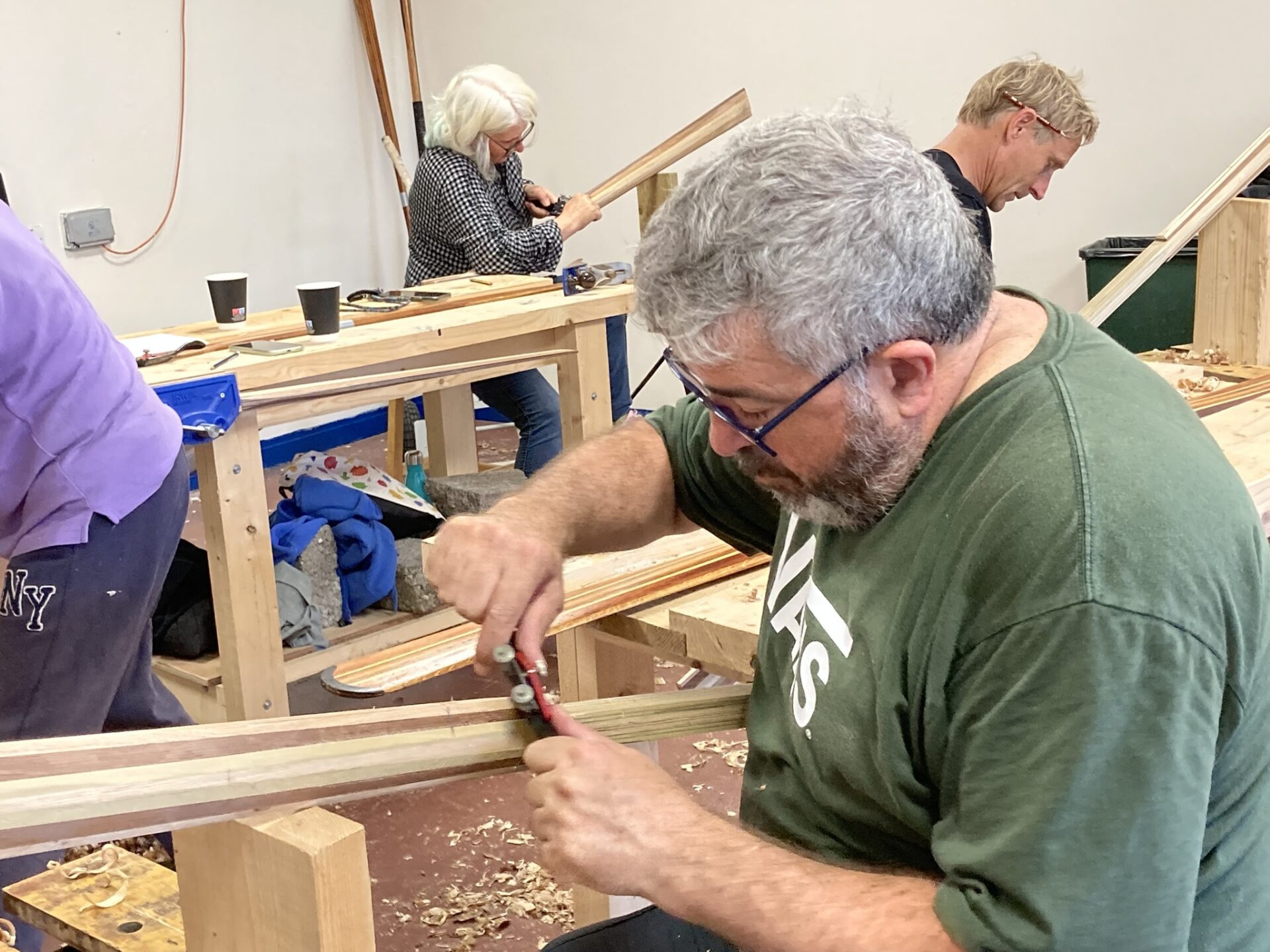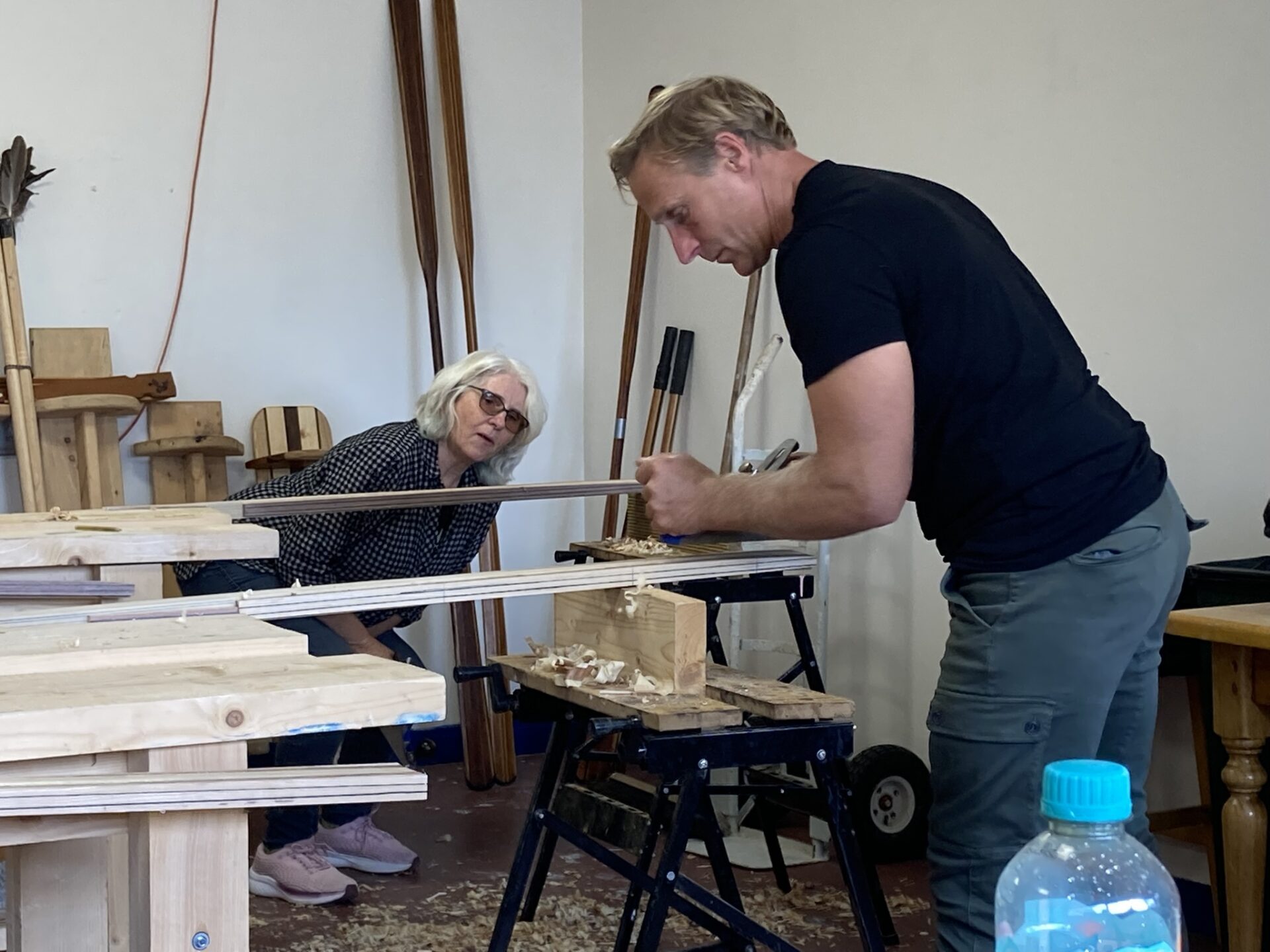 Prior to the workshop John’s attention to detail, preparation and communication were excellent. He made sure that everything that could be done to make the workshop a success was looked after. Even though the workshop was held off site, it did not feel like it suffered in any way. The space was very well adapted. John had transported and set up work benches, tools and, most importantly, beautifully prepared blanks for the paddles.